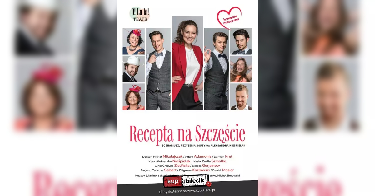 "Recepta na Szczęście" to najlepsza i najbardziej wyczekiwana muzyczna komedia romantyczna w teatrze w tym sezonie artystycznym - z muzyką na żywo! Spektakl komediowy i koncert w jednym!
